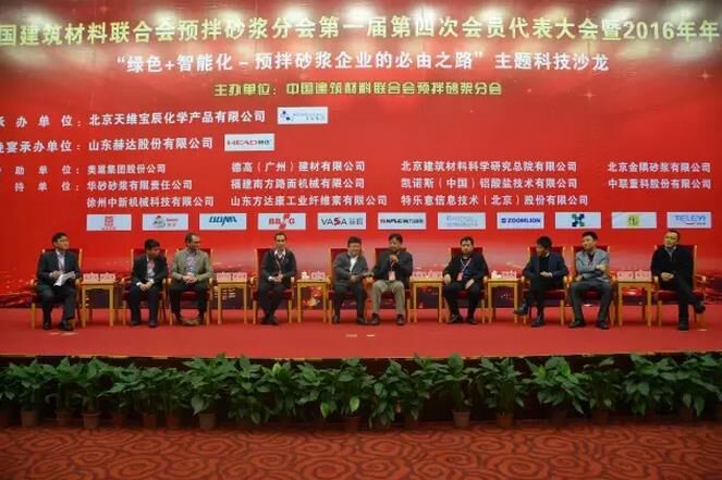 伴隨國家政策和產業(yè)結構的調整,未來預拌砂漿行業(yè)不論是生產線建設還是產品生產,都將離不開“綠色”和“智能化”這兩個主題詞。美巢集團股份公司董事長張經甫、北京天維寶辰化學產品有限公司總裁王義、山東赫達股份有限公司總經理畢于東、金隅冀東混凝土管理中心總經理葛棟、上海艾錄包裝股份有限公司董事長陳安康、凱諾斯(中國)鋁酸鹽技術有限公司亞太研發(fā)中心經理Bruno Touzo、唐姆建材有限公司副總經理王謙、中聯(lián)重科股份有限公司m-tec中國事業(yè)部產品總監(jiān)吳漫天在隨后的企業(yè)家?guī)p峰論壇環(huán)節(jié)共聚一堂,分別針對上述兩個關鍵詞闡述了各自的觀點,并與臺下觀眾進行了熱烈的互動交流。企業(yè)家?guī)p峰論壇由堡密特建筑材料(蘇州)有限公司副總經理熊少波主持。