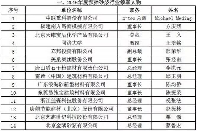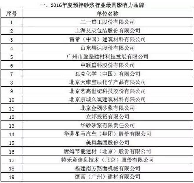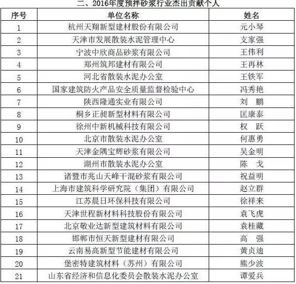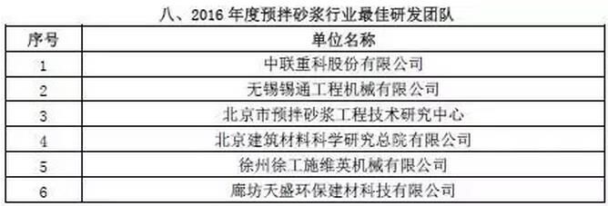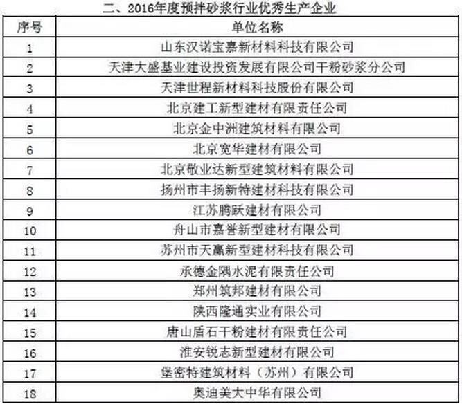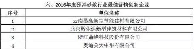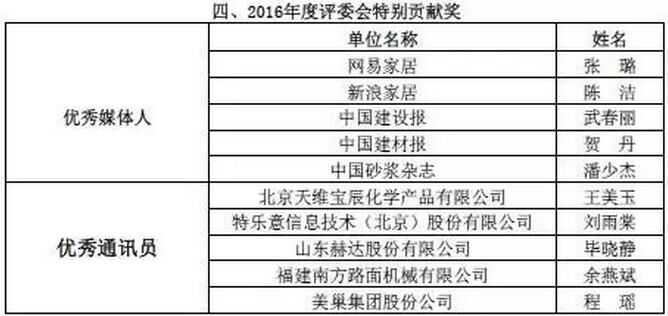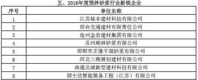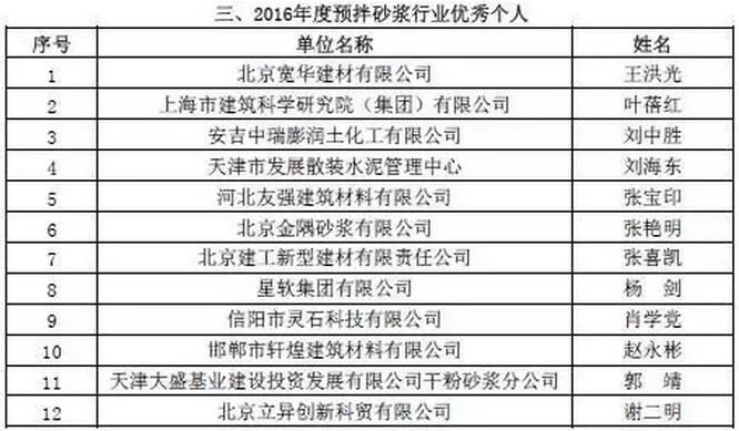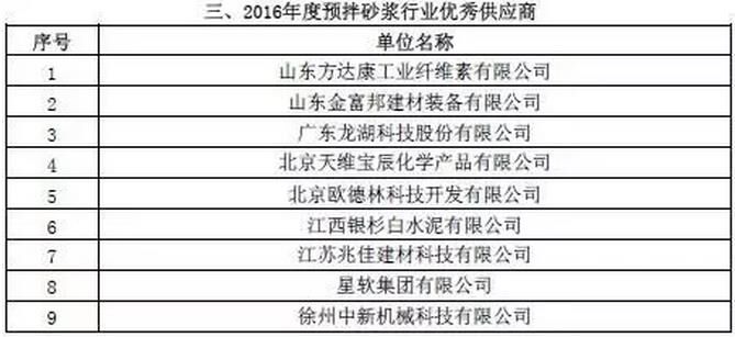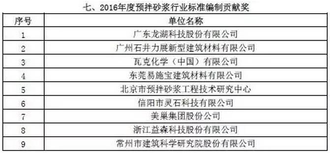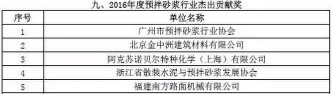 附:2016年度預拌砂漿行業(yè)表彰評比名單