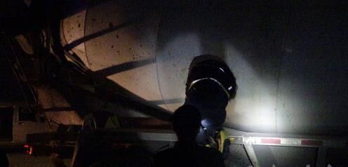見(jiàn)此,消防中隊(duì)指揮員立即聯(lián)系當(dāng)?shù)孛窬?,找?lái)焊接工協(xié)助,方才將車(chē)窯破個(gè)洞。隨后,攪拌車(chē)司機(jī)慢慢將回轉(zhuǎn)窯轉(zhuǎn)動(dòng),指揮員派3名人員深入內(nèi)部,終于將人抬出。