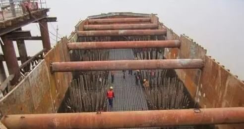 傾注法澆筑水下混凝土,可用于岸邊水深不起過1.5m的情況。新澆的混凝土堆用夯擊或振動(dòng)等方法擠入已澆的混凝土體中,使只有前沿的混凝土坡面與水直接接觸。混凝土的坍落度以7~10cm為宜。采用此種方法應(yīng)盡量縮短澆筑時(shí)間,在澆筑工作未完成之前,先澆的混凝土不得凝固。