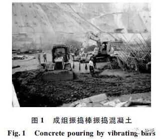 實(shí)際上,坍落度不僅只是一個(gè)靜態(tài)性能的檢測(cè),反映不出在振動(dòng)外力作用下的行為,而且坍落度值大小無(wú)法反映出拌合物塑性黏度,但是塌落時(shí)的快慢在一定程度上與可泵性相關(guān)。早先在檢測(cè)混凝土坍落度后,要用振搗棒從側(cè)面敲擊,稱(chēng)為“棍度”,也是一種有效的工作度評(píng)價(jià),再結(jié)合肉眼觀察,綜合評(píng)定混凝土的和易性,這種方法應(yīng)該說(shuō)還是比較全面的。當(dāng)然,對(duì)于振搗作用的評(píng)價(jià)需要例如混凝土維勃稠度儀簡(jiǎn)稱(chēng)VB儀)來(lái)檢測(cè)。筆者前些時(shí)在一個(gè)水電工程施工單位時(shí),建議用VB儀來(lái)評(píng)價(jià)拌合物的工作度,因?yàn)楝F(xiàn)行用50~70mm坍落度來(lái)評(píng)價(jià)的做法很脫離施工現(xiàn)場(chǎng)用成組振搗棒振搗作用的實(shí)際(見(jiàn)圖1)。