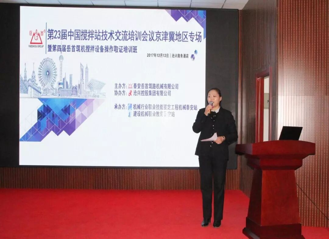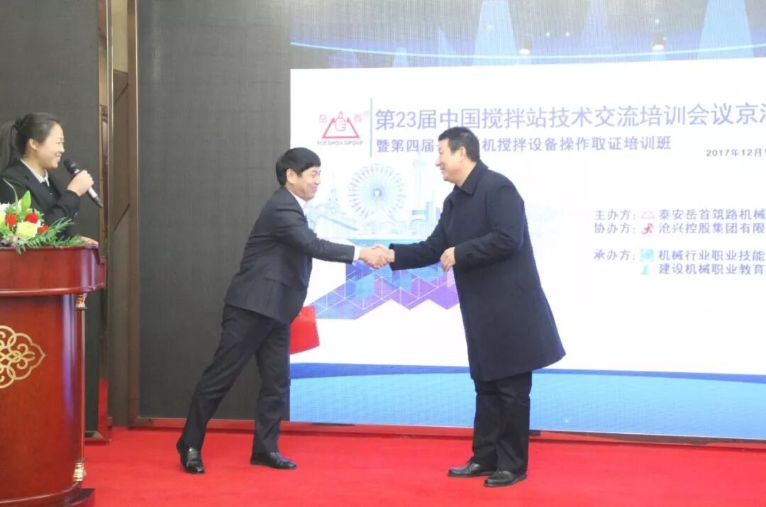 為進(jìn)一步提高攪拌設(shè)備從業(yè)人員的專業(yè)管理、操作技能水平;探討交流攪 拌站維護(hù)保養(yǎng)方式方法;使一線管理、操作人員具備能管理、懂原理、懂構(gòu)造、懂用途、懂性能,會操作、會維護(hù)、會排除故障的專業(yè)技能;更好 地服務(wù)于設(shè)備使用單位。泰安岳首筑路機(jī)械有限公司聯(lián)合機(jī)械行業(yè)職業(yè)技 能鑒定工程機(jī)械泰安站、建設(shè)機(jī)械職業(yè)教育泰安站于2017 年12 月11-12 日在河北省滄州市舉辦了“第23屆中國攪拌站技術(shù)(設(shè)備)交流培訓(xùn)會議 京津冀地區(qū)專場暨第四屆岳首筑機(jī)攪拌設(shè)備管理操作培訓(xùn)班”,滄興控股集團(tuán)有限公司協(xié)辦了本次會議。
