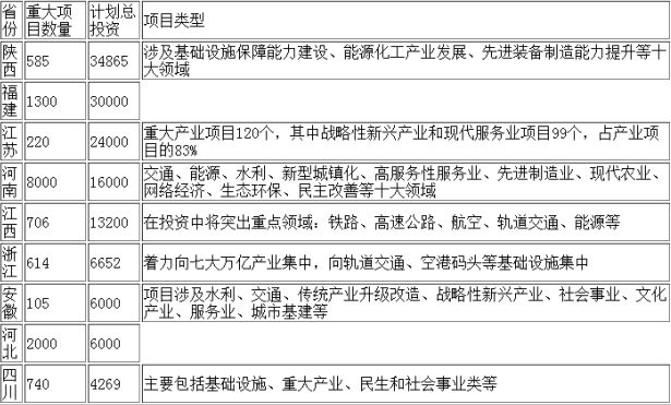 比如,四川去年重點(diǎn)項(xiàng)目500個(gè)總投資近3萬(wàn)億,年度計(jì)劃投資4188億元。而今年740個(gè)重大項(xiàng)目總投資4269億元,計(jì)劃完成投資1179億元;而安徽去年重點(diǎn)項(xiàng)目投資計(jì)劃規(guī)模8000億元,今年估算規(guī)模6000多億元。