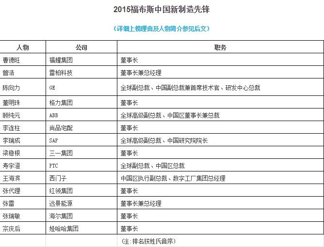“福布斯中國(guó)新制造先鋒”入選者均為中國(guó)新制造領(lǐng)域的商業(yè)人物代表。