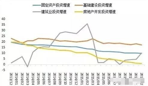 2015年,全國固定資產(chǎn)投資(不含農(nóng)戶)551590億元,比上年名義增長10%(扣除價(jià)格因素,實(shí)際增長12%),增速比1-11月份回落0.2個(gè)百分點(diǎn)。從環(huán)比速度看,12月份固定資產(chǎn)投資(不含農(nóng)戶)增長0.68%。建筑業(yè)固定資產(chǎn)投資總額4895億元,同比增長10.2%,增速較1-11月提高了5.4個(gè)百分點(diǎn)。今年以來,制造業(yè)投資大勢(shì)已去,房地產(chǎn)投資降至歷史低點(diǎn)且尚未見底。由于基建投資具有逆周期特性且保持快速增長,穩(wěn)增長寄希望于基建投資托底。發(fā)改委更是密集批復(fù)基建項(xiàng)目助力穩(wěn)增長?;A(chǔ)設(shè)施投資(不含電力)101271億元,比上年增長17.2%,增速比1-11月份回落1個(gè)百分點(diǎn)。其中,水利管理業(yè)投資增長21%,增速回落2.3個(gè)百分點(diǎn);公共設(shè)施管理業(yè)投資增長20.2%,增速回落0.3個(gè)百分點(diǎn);道路運(yùn)輸業(yè)投資增長16.7%,增速回落0.8個(gè)百分點(diǎn);鐵路運(yùn)輸業(yè)投資增長0.6%,增速回落0.2個(gè)百分點(diǎn)。