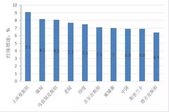 從經(jīng)濟(jì)增速看,新興國家經(jīng)濟(jì)增速較快,發(fā)達(dá)國家經(jīng)濟(jì)復(fù)蘇較慢。全年經(jīng)濟(jì)增長的國家58個(gè),增速超過6%的國家12個(gè),分別是土庫曼斯坦、緬甸、烏茲別克斯坦、老撾、印度、吉爾吉斯坦、柬埔寨、中國、斯里蘭卡、塔吉克斯坦、孟加拉國、馬來西亞。經(jīng)濟(jì)下滑的國家9個(gè),分別是,日本、文萊、也門、俄羅斯、白俄羅斯、摩爾多瓦、伊拉克、烏克蘭、阿曼。