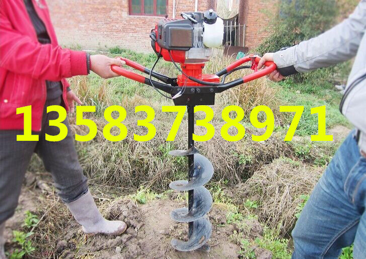 地鉆由小型通用汽油機(jī),齒輪箱及特殊設(shè)計(jì)的鉆具組成.適合在土地,凍土,冰層上打孔.廣泛用于園林,種植,植樹(shù),物探,道路建設(shè)等領(lǐng)域  2.鉆頭采用錳鋼合成更加的堅(jiān)硬。對(duì)硬土質(zhì),超硬土質(zhì),粘土,凍土等都能工作。   3.地鉆可根據(jù)樹(shù)種,選配多種規(guī)格的鉆頭,以滿(mǎn)足用戶(hù)需要。 4.地鉆能夠讓人們從繁重的體力勞動(dòng)解放出來(lái),廣泛應(yīng)用于植樹(shù)造林,栽種果林、籬笆、及秋季給果樹(shù)施肥等。適合各種地形,效率高,便于攜帶及野外田地作業(yè)。   5.地鉆既可以單人操作,又可雙人操作,經(jīng)濟(jì)實(shí)用。   注意事項(xiàng):1.使用正品2T(二沖程)FC級(jí)機(jī)油,嚴(yán)禁使用4T(四沖程)機(jī)油。   2.嚴(yán)禁使用純汽油。   3.嚴(yán)格按251的比例兌油. 4.新機(jī)器不可高速使用,請(qǐng)低速磨合3小時(shí)。   5.嚴(yán)禁在高速的時(shí)候突然關(guān)停發(fā)動(dòng)機(jī),否則會(huì)使下次開(kāi)機(jī)啟動(dòng)困難。   6.感覺(jué)機(jī)器震動(dòng)異常,請(qǐng)立即停機(jī)檢查,是否破損,松動(dòng),偏心。   7.嚴(yán)禁在有亂石堆的草地上使用。   8.鉆頭有嚴(yán)格的尺寸限制,嚴(yán)禁私自改裝或使用增大號(hào)鉆頭. 9.每工作一段時(shí)間清除火花塞、消音器積碳,清洗空氣濾清器,向齒輪箱加注黃油。   10.遇到問(wèn)題自己無(wú)法解決的,不要私自拆裝。   11.機(jī)器長(zhǎng)時(shí)間不用時(shí),應(yīng)該將剩余的燃油倒出,然后發(fā)動(dòng)機(jī)器將化油器內(nèi)的燃油全部燃燒干凈。   12.想讓機(jī)器運(yùn)轉(zhuǎn)更穩(wěn)定,壽命更長(zhǎng)請(qǐng)經(jīng)常保養(yǎng)。   安全事項(xiàng):   A.人身安全:嚴(yán)禁在室內(nèi)添加汽油,嚴(yán)防火災(zāi);機(jī)器運(yùn)行時(shí),嚴(yán)禁手腳靠近鉆頭;清理或檢查機(jī)器時(shí)必須停機(jī)。   B.機(jī)器安全:地鉆起動(dòng)前必須清理草坪上的雜物,確保機(jī)器安全運(yùn)轉(zhuǎn)。