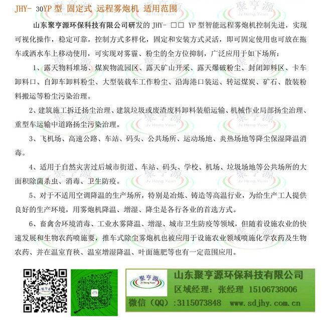 歸屬行業(yè):聚亨源JHY-□□YP系列遠(yuǎn)程霧炮機(jī)
