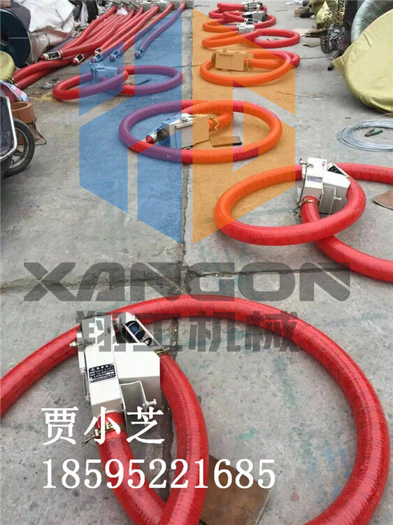 2.簡(jiǎn)易手持型:隨車配置不用電,單重1公斤980/個(gè),接上直徑75毫米PVC塑光,長(zhǎng)5-10米長(zhǎng),進(jìn)口段扎入糧堆上,出口段套上配置的卸糧彎頭段隨意掛在車廂上即可使用。在車的發(fā)動(dòng)機(jī)傳動(dòng)部位配個(gè)空壓機(jī)機(jī)頭,連上氣管,時(shí)裝車2-8噸左右,特別是移動(dòng)方便,可以抽水噴灑化肥