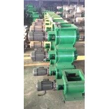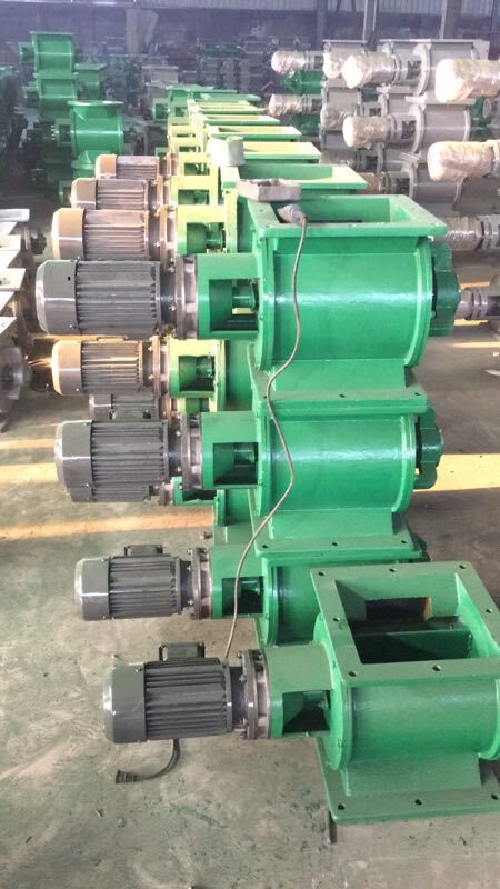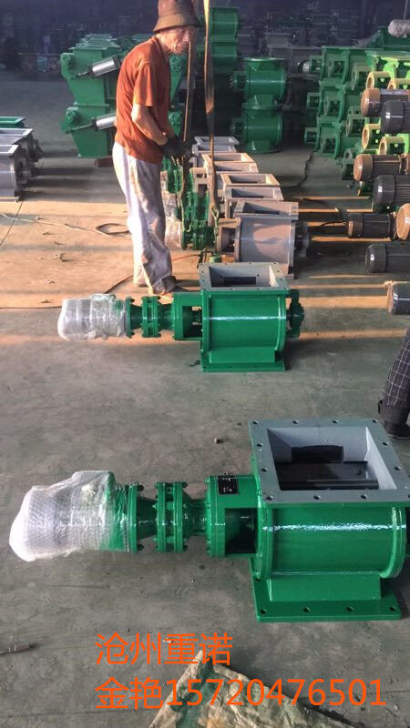 工作原理:星型卸料器工作時(shí),粉塵靠重力落入,充滿上面和側(cè)面的星形葉片空格。葉片轉(zhuǎn)子由電動(dòng)機(jī)通過減速機(jī)轉(zhuǎn)動(dòng)軸帶動(dòng),葉輪轉(zhuǎn)到下部粉塵靠自重卸下。這種卸塵器一般都安裝在除塵器灰斗下部,為保證連接處的嚴(yán)密不漏風(fēng),在回轉(zhuǎn)卸料器的上部應(yīng)經(jīng)常保持(儲(chǔ)存)一定高度的粉塵。因?yàn)槿~輪轉(zhuǎn)動(dòng)時(shí),卸完粉塵后葉輪轉(zhuǎn)上的那一面經(jīng)常是沒有粉塵的,所以容易使空氣漏入。為了保持一定高度的灰柱,而且不致卸空,*在灰斗內(nèi)裝設(shè)料位信號設(shè)施,并與卸塵閥的電動(dòng)機(jī)建立連鎖。