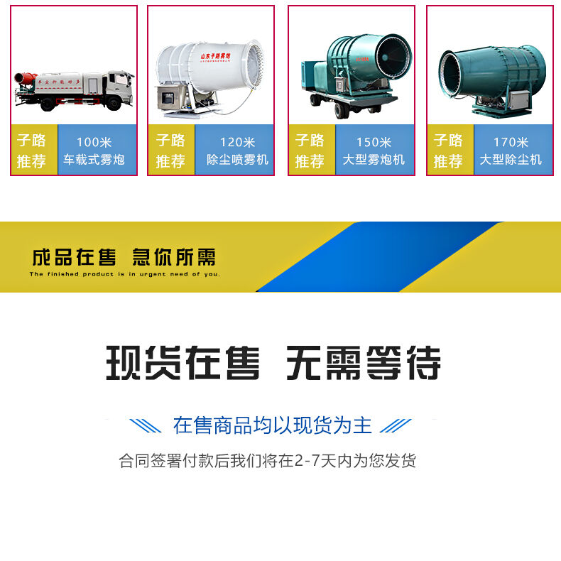 作為城市降塵的一種措施,在建筑工地上也長(zhǎng)使用移動(dòng)式的霧炮機(jī),比較方便。兩類(lèi)霧炮機(jī)各有各的優(yōu)勢(shì),客戶可以根據(jù)自己的實(shí)際需要,選擇合適的霧炮機(jī)型號(hào),雖然霧炮機(jī)的分類(lèi)不同,但都是為了改善環(huán)境而生產(chǎn)的,目的是一致的。