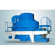 物料由進料斗進入制砂機內(nèi),經(jīng)進料槽進入高速旋轉(zhuǎn)的葉輪中,在葉輪內(nèi)被迅速加速,其加速度可達數(shù)百倍重力加速度,然后以56~66m/ s的速度從葉輪三個均布的流道內(nèi)拋射出去,具有較大動能的與破碎腔內(nèi)周邊鐵砧相碰撞,大部分物料將動能瞬間轉(zhuǎn)化,產(chǎn)生撞擊力和摩擦力,物料在撞擊力作用下,沿薄弱斷面如河卵石的分界線、接合部位和微小裂隙處斷裂,變成細小顆粒,在重力作用下落入下部卸料斗;部分還具有動能的河卵石,經(jīng)鐵砧撞擊后反彈,與葉輪流道口發(fā)射出來的河卵石碰撞,再次與鐵砧撞擊。這樣,一塊河卵石在破碎腔內(nèi)兩次或多次撞擊鐵砧,通過撞擊、摩擦和研磨破碎,形成流體狀河卵石混合物,從卸料斗內(nèi)排出。