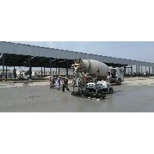 采用機器施工流程:首先通過基準點,找到標高,調(diào)整激光發(fā)射器控制標高。然后直接倒混凝土,機器一次性刮平、提漿、壓實。實現(xiàn)大面積攤鋪。