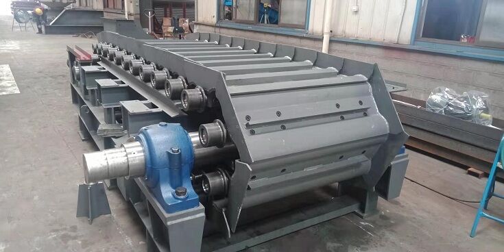 板式給料機(jī)的寬度一般按兩倍的最大粒度加上200mm, 還應(yīng)考慮好與破碎機(jī)進(jìn)料口的寬度連接的問題。