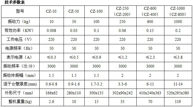 CZ600電磁倉壁振動(dòng)器參數(shù)