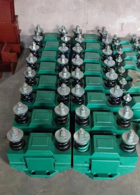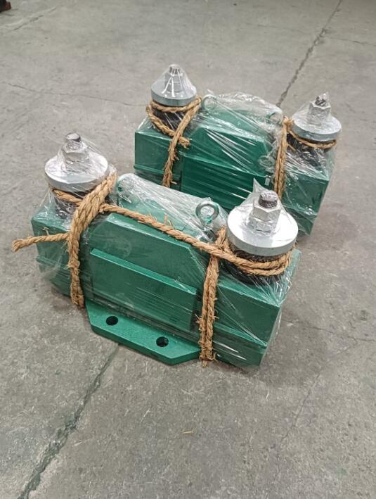 ⑼ 斜溜槽(見圖12):對(duì)于厚度小于3-3.5毫米的料槽,若在中心線靠下一點(diǎn)的部位安裝,便會(huì)在料槽下端產(chǎn)生強(qiáng)烈的振動(dòng)。用于圓筒形料槽時(shí),可先把振動(dòng)器裝在平板上,然后用U型螺栓固定在管子上。安裝單臺(tái)振動(dòng)器時(shí),一般應(yīng)裝在溜槽下端40%的位置上。安裝多臺(tái)時(shí),應(yīng)***同步運(yùn)行,*下部的一臺(tái)應(yīng)裝在距離溜槽端部45-60厘米處。